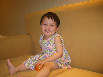 At last, hope! After that breakthrough she began to smile, then giggle and eventually chatter in two-year-old gibberish. She would venture away from her lifeline (Mama!) and play with toys. By the time we flew home she actually occupied her own seat.