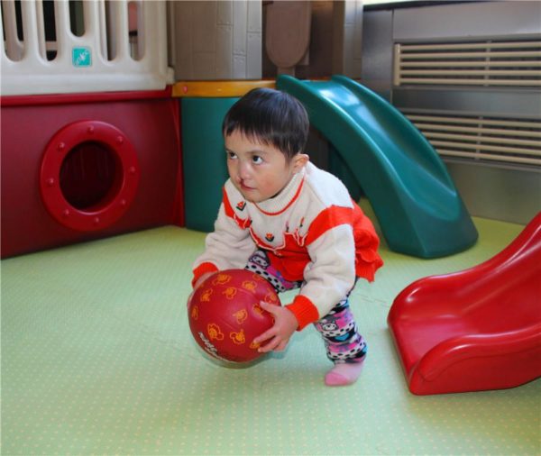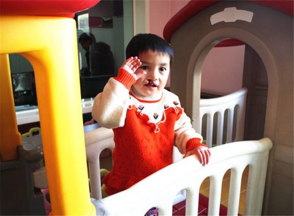 She had a surgery to repair her cleft lip already, but her cleft palate has not been repaired yet. She studies (pre-school) in the welfare center, she can sing, dance, draw, string the beads, put on the clothes for the dolls. Her upper limbs are flexible, she can walk and run, but not very steadily. She is active and gets along well with other kids, and often help other younger kids.